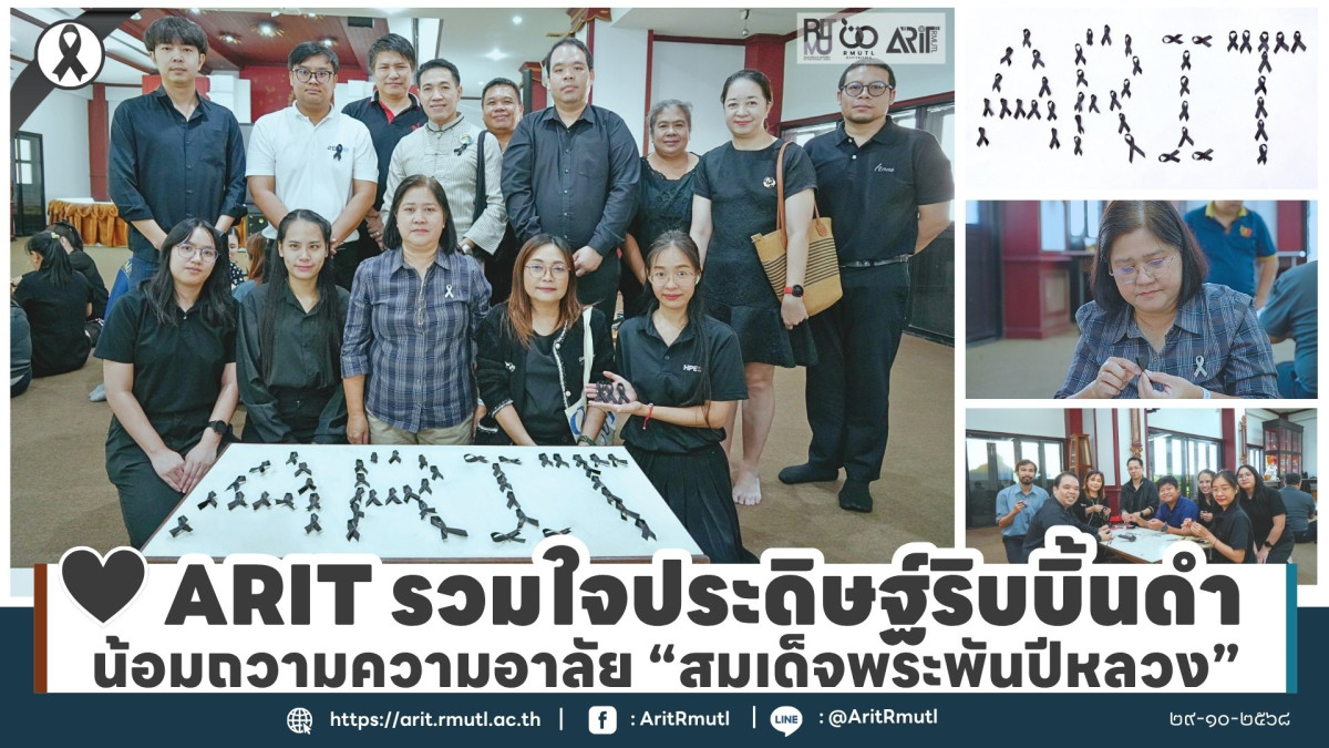 วันนี้ ๒๙ ตุลาคม พ.ศ. ๒๕๖๘ เวลา ๐๙.๐๐ น. สำนักวิทยบริการและเทคโนโลยีสารสนเทศ มหาวิทยาลัยเทคโนโลยีราชมงคลล้านนา (สวส.มทร.ล้านนา) หรือ Office of Academic Resource and Information Technolog (ARIT) นำโดยนางปวีณา ทองปรอน รักษาการในตำแหน่งหัวหน้าสำนักงาน พร้อมด้วยบุคลากร เข้าร่วมกิจกรรม "การทำโบว์ริบบิ้นสีดำ" เพื่อแสดงความอาลัยและน้อมรำลึกในพระมหากรุณาธิคุณอันหาที่สุดมิได้แด่ สมเด็จพระนางเจ้าสิริกิติ์ พระบรมราชินีนาถ พระบรมราชชนนีพันปีหลวง ณ ศาลาราชมงคล มทร.ล้านนา เชียงใหม่