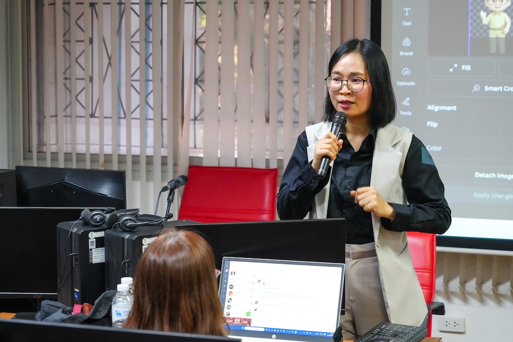 ด้านการอบรมฯ ครั้งนี้ จัดขึ้นเพื่อให้ อาจารย์ บุคลากร มีความเข้าใจเกี่ยวกับการใช้งาน Canva ในการออกแบบสื่อดิจิทัล เกิดการพัฒนาทักษะ การออกแบบสื่อดิจิทัล สำหรับงานประเภทต่าง ๆ เช่น โปสเตอร์ อินโฟกราฟิก งานนำเสนอ และสื่อสำหรับโซเชียลมีเดีย รวมไปถึงสามารถนำความรู้ที่ได้รับไปประยุกต์ใช้ ในการเรียน การสอน การวิจัย การประชาสัมพันธ์ และการสื่อสารในองค์กรของตนได้อย่างมีประสิทธิภาพ