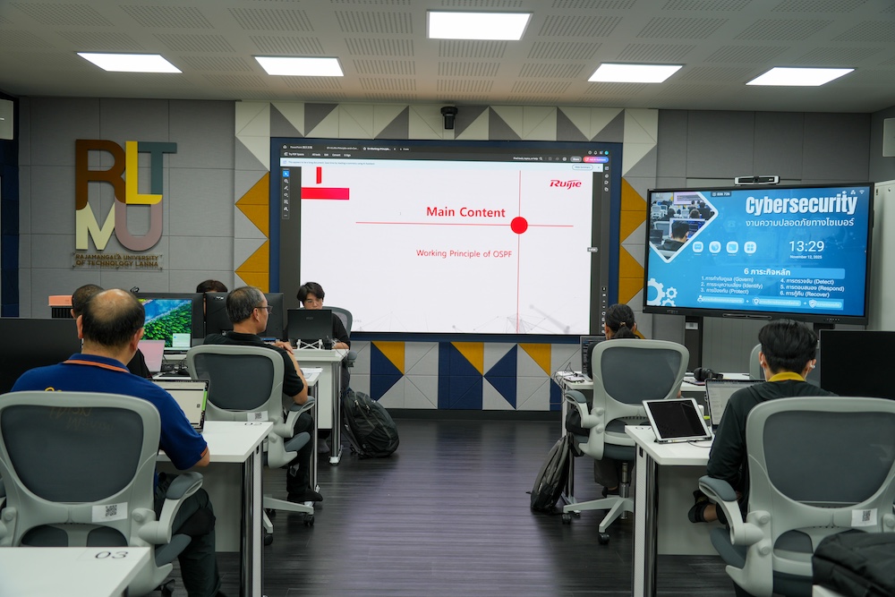 ระหว่างวันที่ ๑๑ - ๑๒ พฤศจิกายน ๒๕๖๘ ณ ห้องฝึกอบรม ๓ ชั้น ๒ อาคาหอสมุด บุคลากร มหาวิทยาลัยเทคโนโลยีราชมงคลล้านนา (มทร.ล้านนา) จำนวน ๑๐ คน เข้ารับการอบรมและทดสอบเพื่อรับใบรับรองมาตรฐานวิชาชีพด้านเครือข่ายจาก Ruijie Networks (บริษัท รุ่ยเจี๋ย เน็ตเวิร์คส์ (ไทยแลนด์) สืบเนื่องจากการต่อยอดของบันทึกข้อตกลง (MOU) และการหารือร่วมกันเมื่อวันที่ ๒๖ กันยายน ๒๕๖๘ ที่ผ่านมา