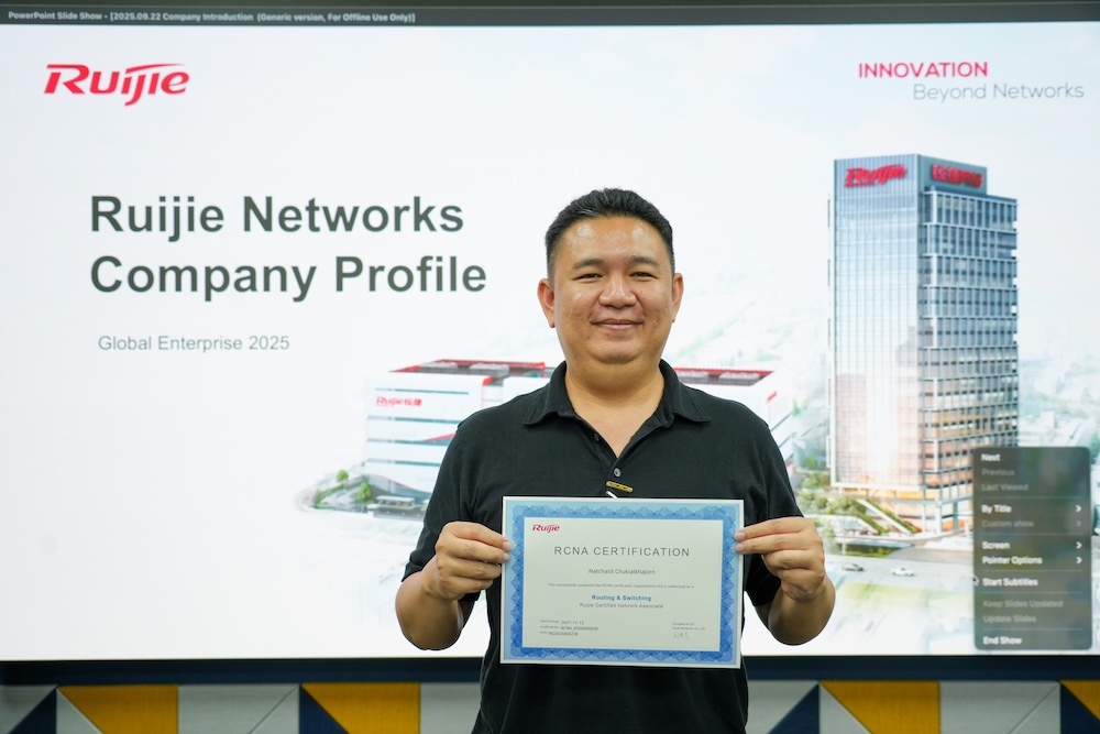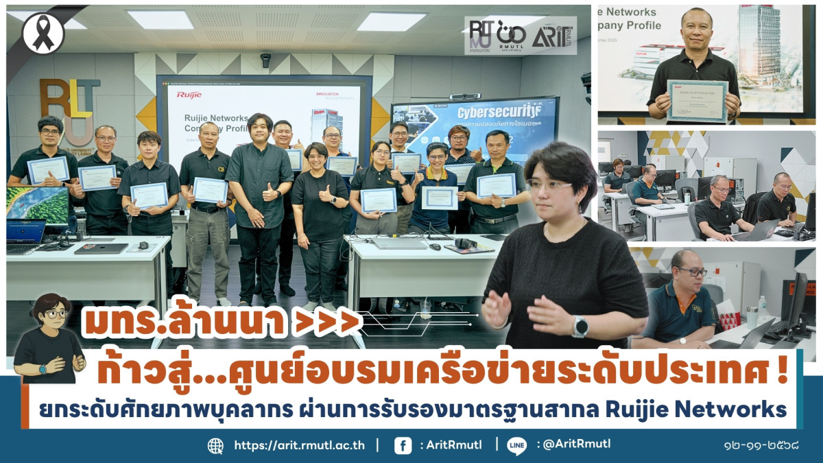 โดยความสำเร็จครั้งนี้ตอกย้ำความแข็งแกร่งด้านเทคโนโลยีเครือข่ายของมหาวิทยาลัย จากการได้รับการยกระดับและรับรองอย่างเป็นทางการในฐานะ Ruijie Certified Partner และศูนย์อบรมระดับประเทศ ถือเป็นก้าวสำคัญที่แสดงถึงศักยภาพและความพร้อมในการเป็นแหล่งเรียนรู้และพัฒนาบุคลากรด้านเทคโนโลยีเครือข่ายตามมาตรฐานสากล โดยมีบุคลากรหลักที่ผ่านการอบรมและได้รับการรับรองในฐานะผู้ฝึกสอนที่มีศักยภาพ ซึ่งในอนาคต มทร.ล้านนา มีแผนผลักดันตนเองให้เป็นศูนย์อบรมเครือข่ายระดับประเทศอย่างเต็มรูปแบบ เพื่อสร้างความยั่งยืนในการถ่ายทอดองค์ความรู้และขยายผลการฝึกอบรมไปสู่มหาวิทยาลัย ชุมชน และภาคอุตสาหกรรมในวงกว้างอย่างมีประสิทธิภาพต่อไป