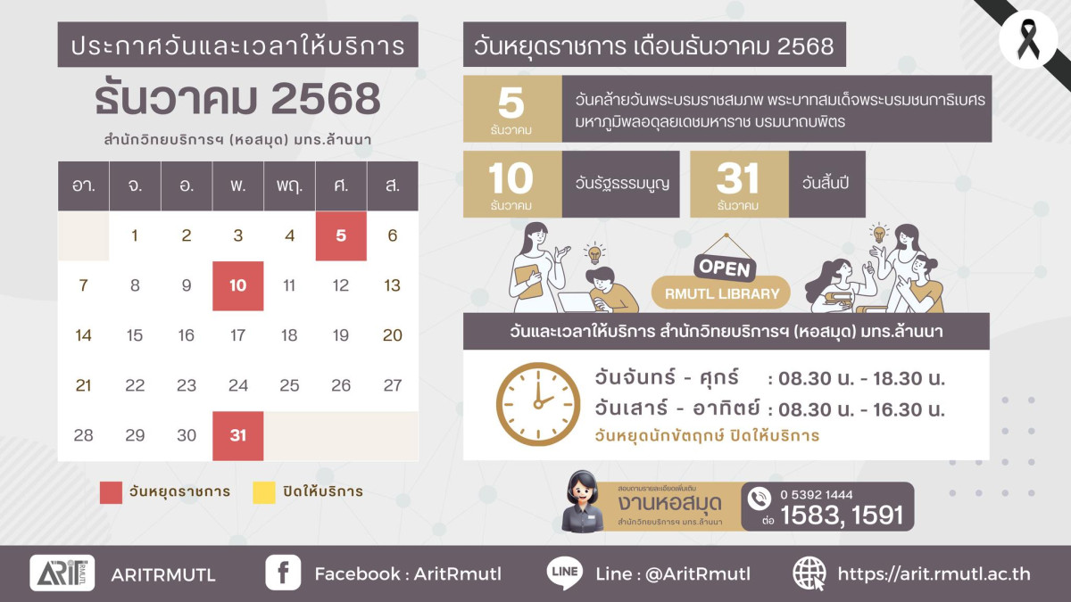 ออกแบบและพัฒนาโดย สำนักวิทยบริการและเทคโนโลยีสารสนเทศ มหาวิทยาลัยเทคโนโลยีราชมงคลล้านนา