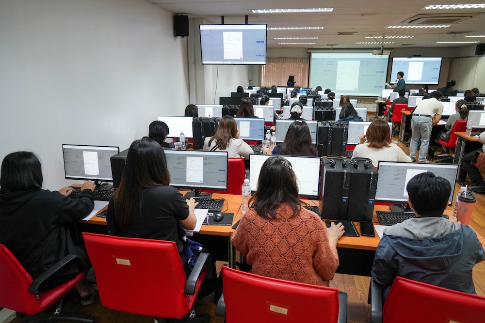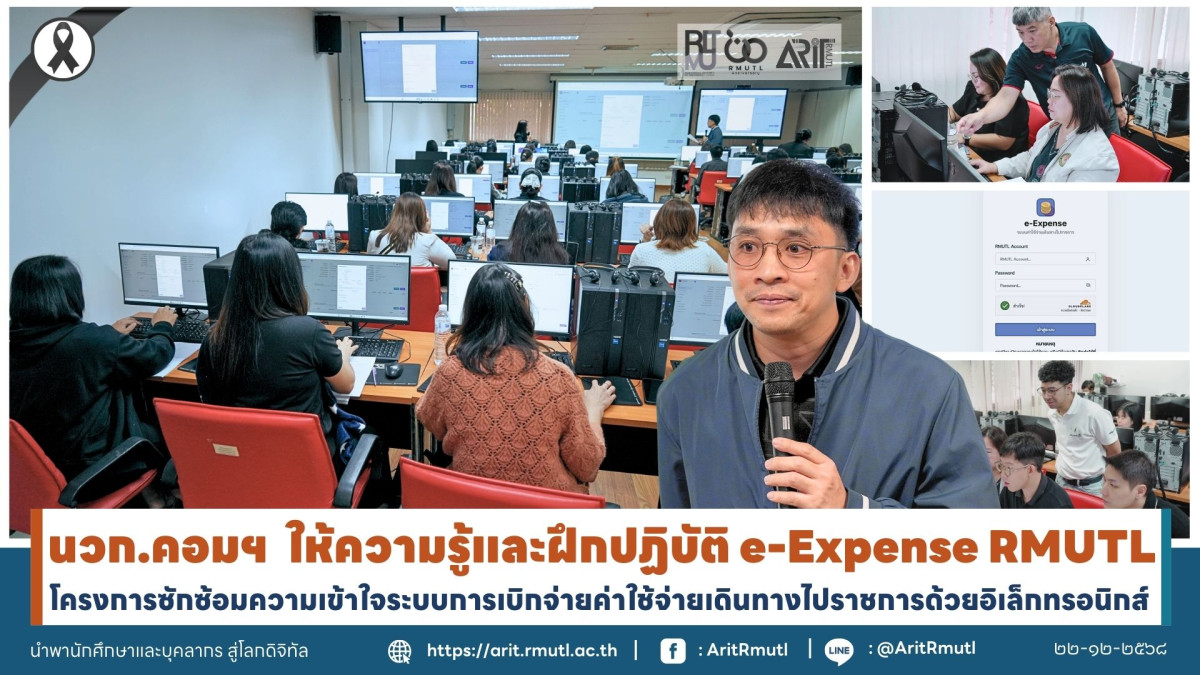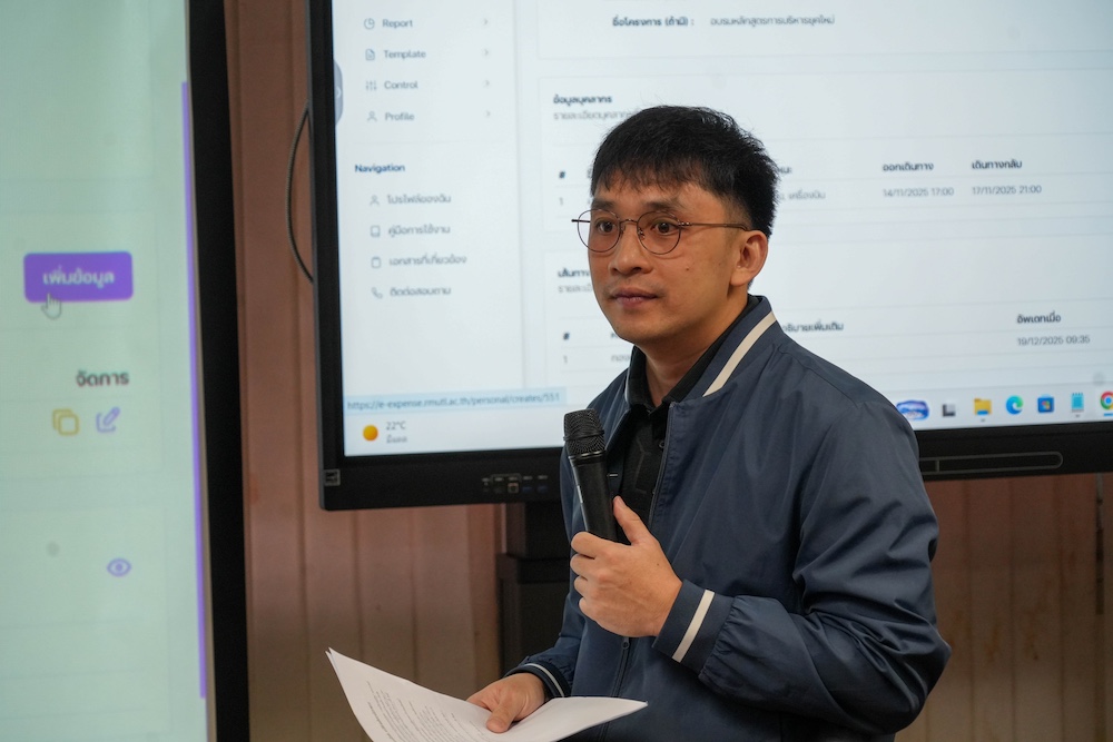 ระหว่างวันที่ ๑๘ ถึง ๑๙ ธันวาคม พ.ศ. ๒๕๖๘ ที่ผ่านมา บุคลากร งานพัฒนาระบบสารสนเทศ นำโดย นายภรัญยู ใจบำรุง นักวิชาการคอมพิวเตอร์ ชำนาญการ สำนักวิทยบริการและเทคโนโลยีสารสนเทศ มหาวิทยาลัยเทคโนโลยีราชมงคลล้านนา (สวส.มทร.ล้านนา) ได้รับเกียรติเป็นวิทยากรให้ความรู้และฝึกปฏิบัติ “ โครงการซักซ้อมความเข้าใจระบบการเบิกจ่ายค่าใช้จ่ายเดินทางไปราชการด้วยอิเล็กทรอนิกส์ ” (https://e-expense.rmutl.ac.th) จัดโดยกองคลัง สำนักงานอธิการบดี ณ ห้องฝึกปฏิบัติการ Virtual Desktop ๑ อาคาร สวส.มทร.ล้านนา (ห้องสมุด) มีนางสาวสุปราณี สัมปุรณะพันธ์ ผู้อำนวยการกองคลัง กล่าวเปิดงาน
