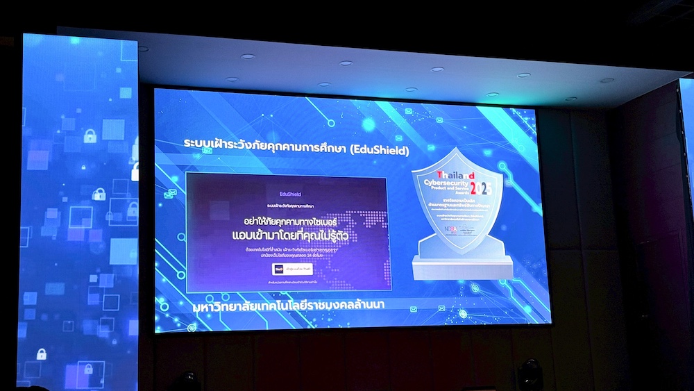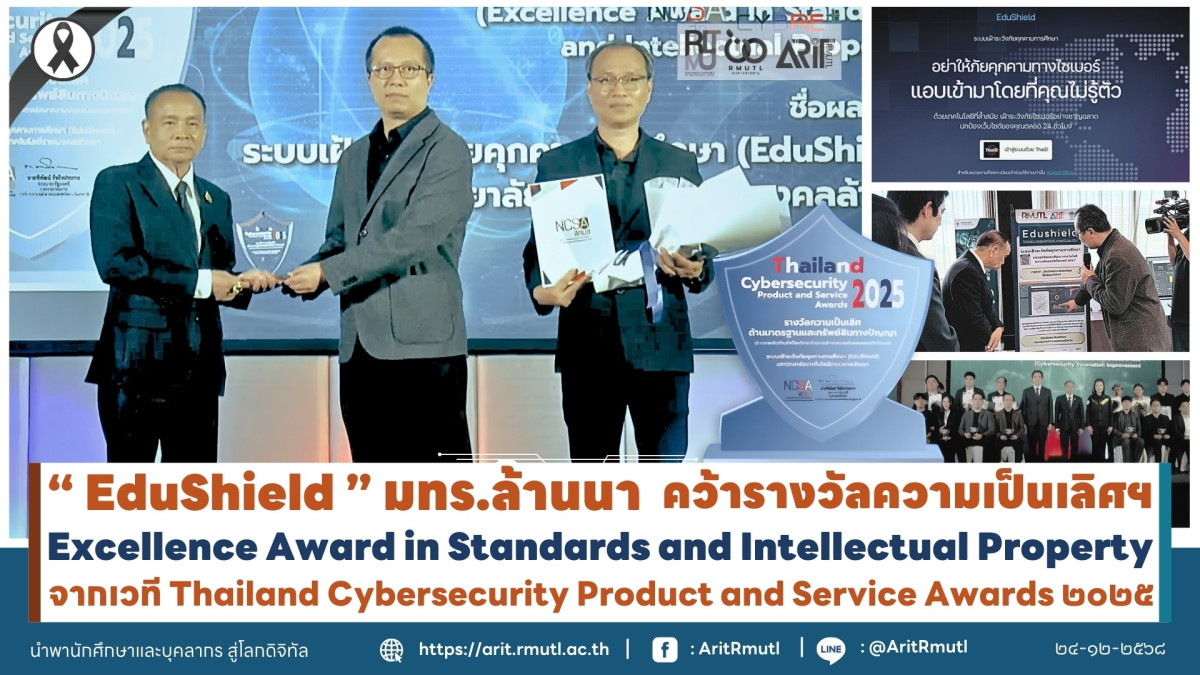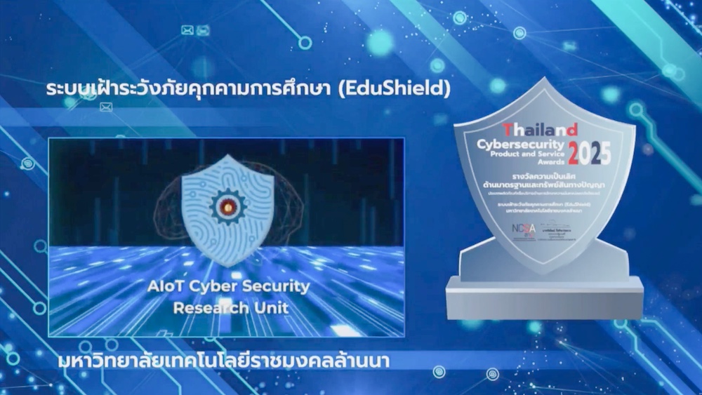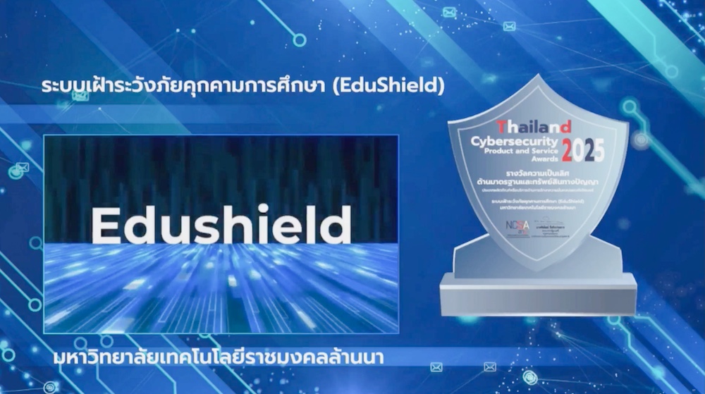 โดย มทร.ล้านนา ได้รับรางวัลภายใต้นวัตกรรม “EduShield” (https://edushield.rmutl.ac.th/) ระบบเฝ้าระวังภัยคุกคามการศึกษา เป็นผลงานที่ได้รับการรับรองตามมาตรฐานสากล หรือมีการจดทะเบียนสิทธิบัตร/ลิขสิทธิ์ แสดงถึงศักยภาพและคุณภาพของนวัตกรรมไทยในระดับนานาชาติ ซึ่งสำนักงานคณะกรรมการการรักษาความมั่นคงปลอดภัยไซเบอร์แห่งชาติ (สกมช.) ได้จัดพิธีมอบรางวัลอันทรงเกียรติ เพื่อเชิดชูองค์กรที่มีผลงานโดดเด่นด้านความมั่นคงปลอดภัยทางไซเบอร์ มีพลตรีรีรวุฒิ วิทยากรณ์ รองเลขาธิการฯ กล่าวรายงาน ได้รับเกียรติจากนายอารี ไกรนรา ผู้ช่วยรัฐมนตรีประจำสำนักนายกรัฐมนตรี กล่าวปาฐกถาเปิดงาน ท่ามกลางตัวแทนจากหน่วยงานรัฐ หน่วยงานโครงสร้างพื้นฐานสำคัญทางสารสนเทศ (CII) บริษัทเอกชน และศูนย์ประสานการรักษาความมั่นคงปลอดภัย (CERT) ที่เข้าร่วมงานกันอย่างคับคั่ง