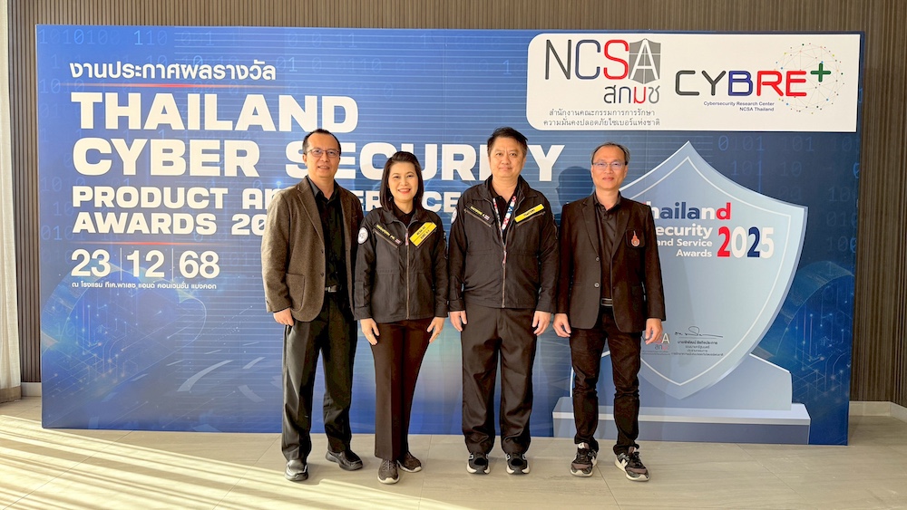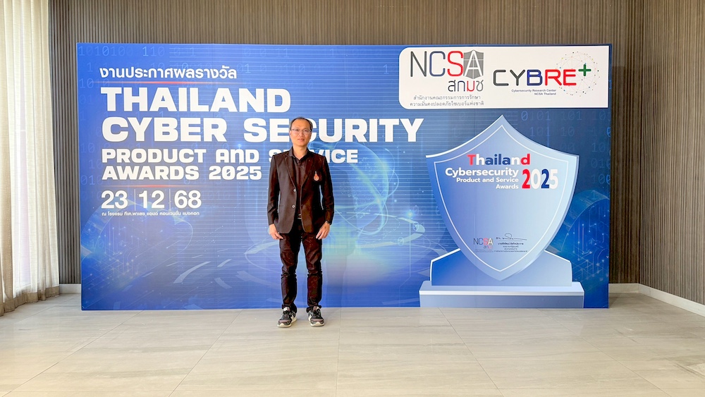วานนี้ ๒๓ ธันวาคม พ.ศ. ๒๕๖๘ ผู้ช่วยศาสตราจารย์ ดร.ประเสริฐ ลือโขง ผู้อำนวยการ สำนักวิทยบริการและเทคโนโลยีสารสนเทศ มหาวิทยาลัยเทคโนโลยีราชมงคลล้านนา (สวส.มทร.ล้านนา) พร้อมด้วย นายประเสริฐ เทพภาพ นักวิชาการคอมพิวเตอร์ ชำนาญการ (งานความปลอดภัยทางไซเบอร์) ในนามตัวแทน มทร.ล้านนา เข้ารับรางวัลความเป็นเลิศด้านมาตรฐานและทรัพย์สินทางปัญญา (Excellence Award in Standards and Intellectual Property) ในงานพิธีมอบรางวัลกิจกรรม “ การประกวดผลิตภัณฑ์และบริการในภาคอุตสาหกรรมด้านการรักษาความมั่นคงปลอดภัยไซเบอร์ประจำปี ๒๕๖๘” (Thailand Cybersecurity Product and Service Awards ๒๐๒๕) ณ ห้องพีโอนี ชั้น ๖ โรงแรมทีเค.พาเลซ แอนด์ คอนเวนชั่น แบงคอก กรุงเทพมหานคร