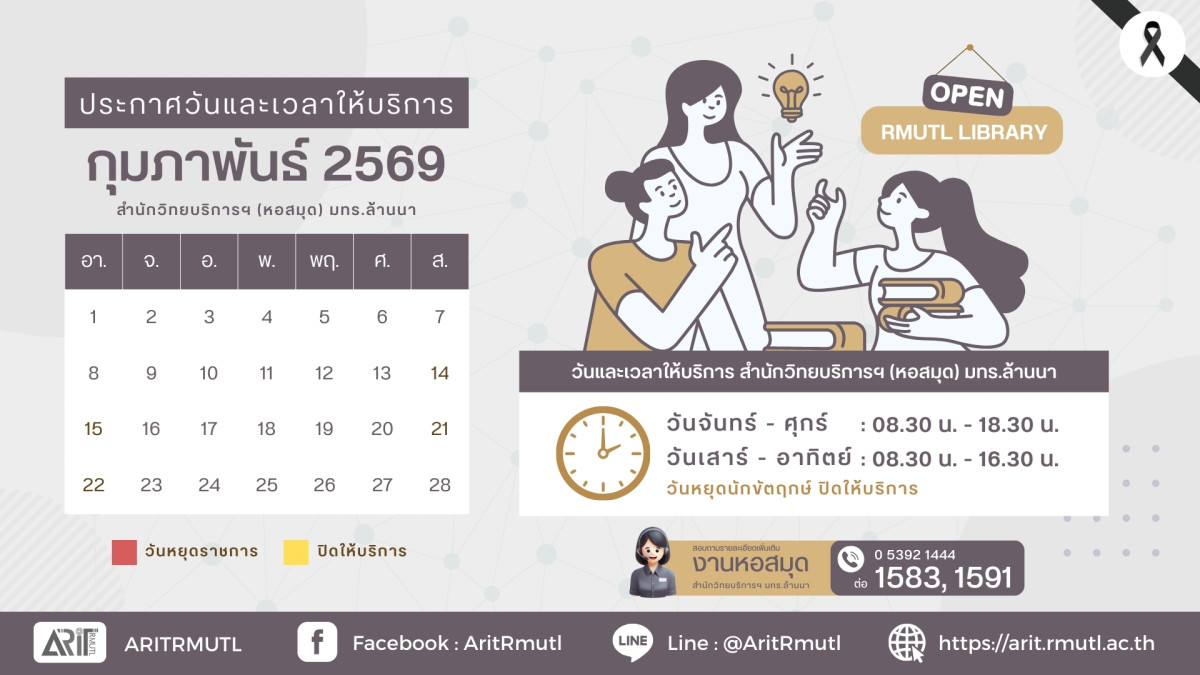ออกแบบและพัฒนาโดย สำนักวิทยบริการและเทคโนโลยีสารสนเทศ มหาวิทยาลัยเทคโนโลยีราชมงคลล้านนา