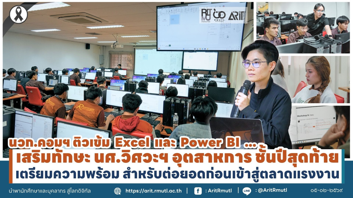 วานนี้ ๔ กุมภาพันธ์ ๒๕๖๙ บุคลากร สำนักวิทยบริการและเทคโนโลยีสารสนเทศ มหาวิทยาลัยเทคโนโลยีราชมงคลล้านนา (สวส.มทร.ล้านนา) นำโดยนางสาวสุพิชฌาย์ ถาวรลิมปะพงศ์ (นักวิชาการคอมพิวเตอร์) งานความปลอดภัยทางไซเบอร์ ได้รับเกียรติเป็นวิทยากรอบรมให้ความรู้ หัวข้อ "การจัดการข้อมูลด้วยโปรแกรม Excel และนำเข้า PowerBi ทำ Dashboard และการใช้เครื่องมือ BI เบื้องต้น แก่นักศึกษาหลักสูตรวิศวกรรมอุตสาหการ - วิศวกรรมอุตสาหการ สาขาวิศวกรรมอุตสาหการ คณะวิศวกรรมศาสตร์ ณ ห้องปฏิบัติการ Virtual Desktop ๑ ชั้น ๑ อาคาร สวส.มทร.ล้านนา (ห้องสมุด) จังหวัดเชียงใหม่