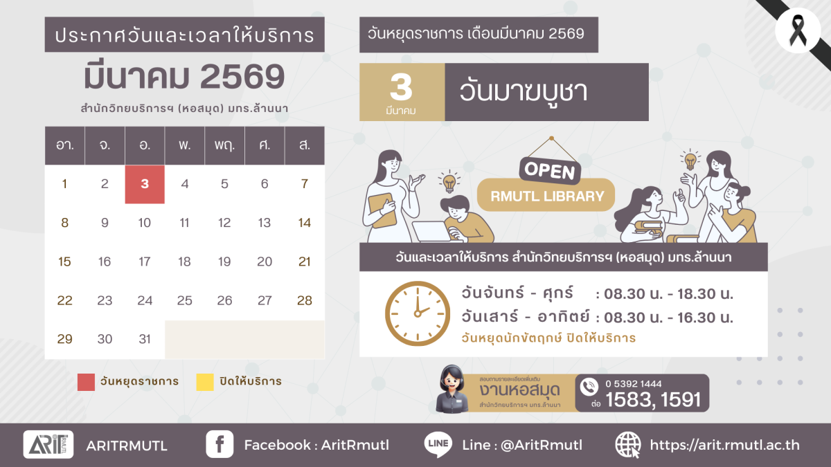 ออกแบบและพัฒนาโดย สำนักวิทยบริการและเทคโนโลยีสารสนเทศ มหาวิทยาลัยเทคโนโลยีราชมงคลล้านนา