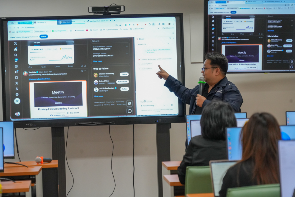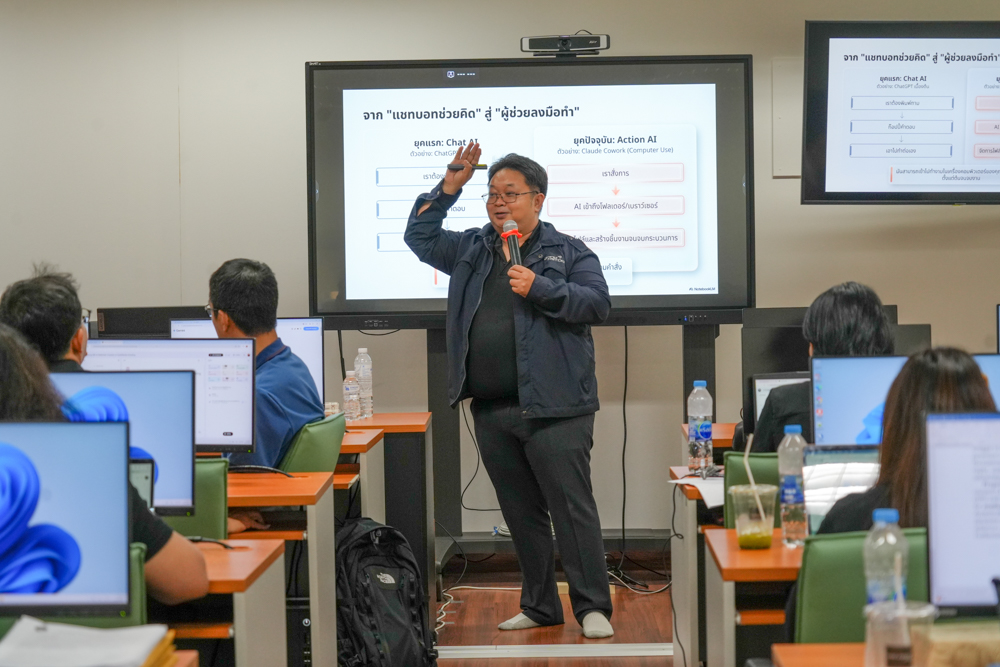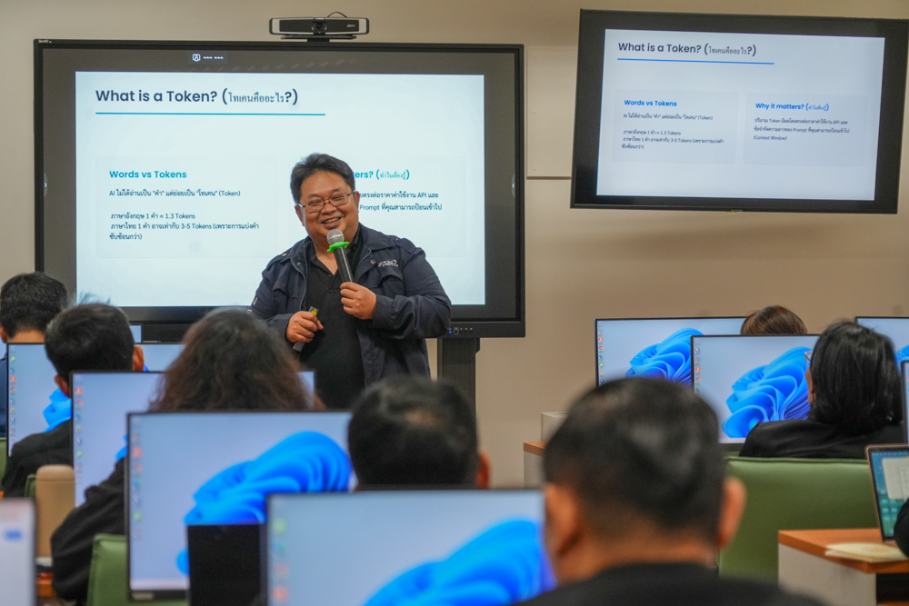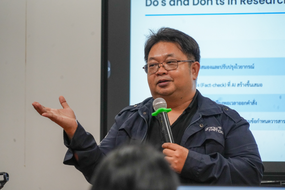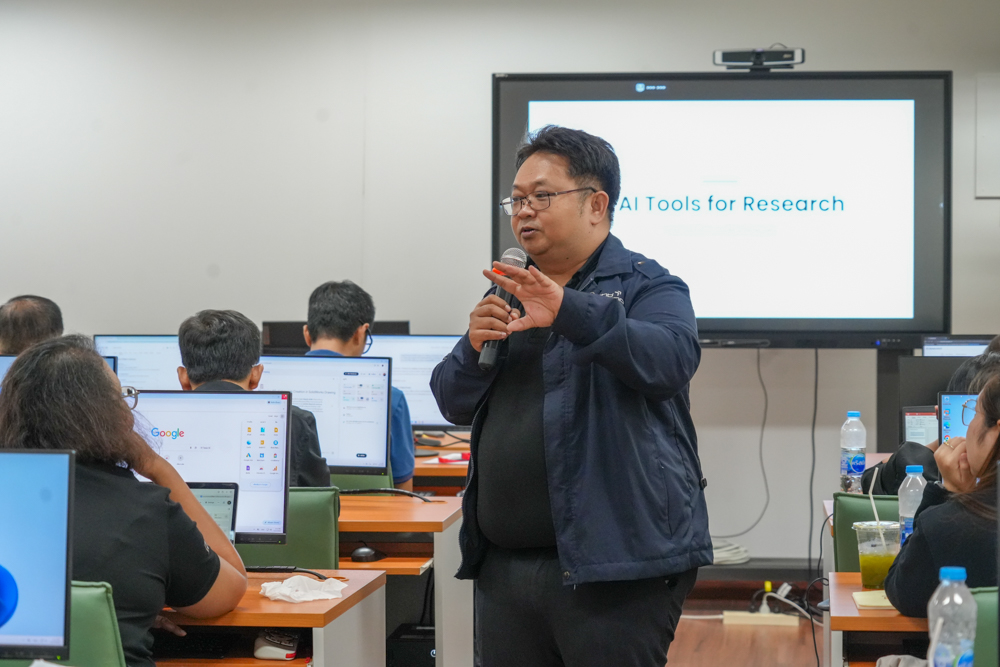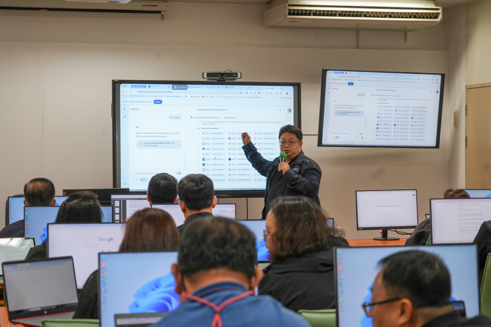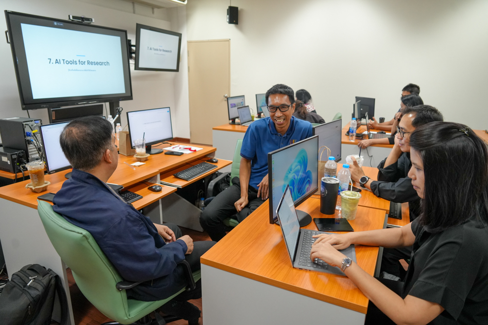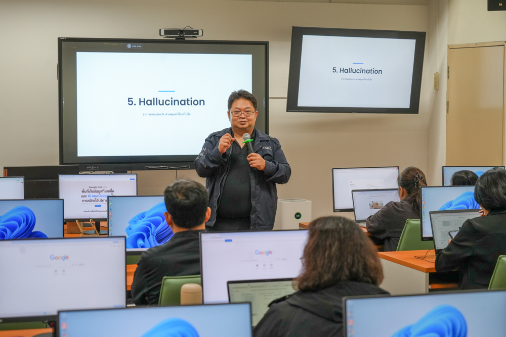 ทั้งนี้ โครงการได้มุ่งเน้นให้ผู้เข้ารับการอบรมเกิดทักษะ มีความรู้ และความสามารถในการประยุกต์ใช้เครื่องมือ AI ได้อย่างเหมาะสมและสอดคล้องกับบริบทการทำงานจริง ผ่านการบูรณาการองค์ความรู้เชิงทฤษฎีควบคู่กับทักษะเชิงปฏิบัติ อันจะนำไปสู่การเสริมสร้างความรู้ ความเข้าใจเกี่ยวกับเทคโนโลยี AI ในการออกแบบและพัฒนาสื่อการเรียนการสอน บทเรียนออนไลน์ และนวัตกรรมทางการศึกษา เพื่อเพิ่มประสิทธิภาพและความทันสมัยของการเรียนการสอนให้สอดรับกับความก้าวหน้าทางเทคโนโลยี และตอบสนองต่อการเรียนรู้ในศตวรรษที่ ๒๑ อย่างยั่งยืนต่อไป