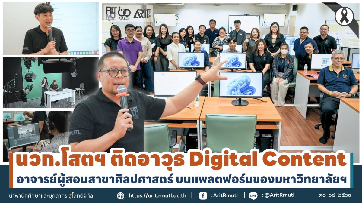 วันนี้ ๓๐ เมษายน ๒๕๖๙ บุคลากร งานผลิตสื่อและมัลติมีเดีย กลุ่มงานบริการการศึกษา สำนักวิทยบริการและเทคโนโลยีสารสนเทศ มหาวิทยาลัยเทคโนโลยีราชมงคลล้านนา (สวส.มทร.ล้านนา) นำโดย นายชัชวาลย์ ศะศิวนิชย์ (นักวิชาการโสตทัศนศึกษา) นายเวธน์วิวัฒน์ เชื้อไทย (นักวิชาการโสตทัศนศึกษา ชำนาญการ) และนางสาวกฤษฎาภรณ์ ทาแก้ว (นักวิชาการโสตทัศนศึกษา) พร้อมด้วยบุคลากร กลุ่มงานฯ ได้รับเกียรติเป็นวิทยากรบรรยายพิเศษเชิงปฏิบัติการ “การสร้าง Content สำหรับอาจารย์ผู้สอน บนแพลตฟอร์มของมหาวิทยาลัยฯ” สาขาศิลปศาสตร์ คณะบริหารธุรกิจและศิลปศาสตร์ ณ ห้องฝึกอบรม ๒ ชั้น ๒ อาคาร สวส.(หอสมุด) มทร.ล้านนา เชียงใหม่